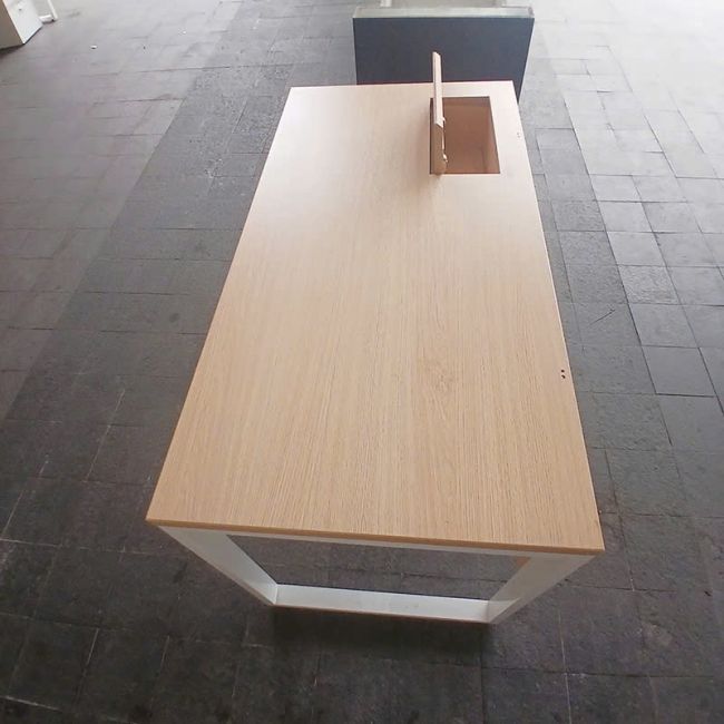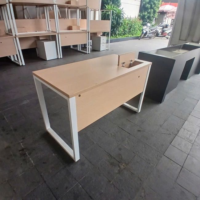 Chiếc bàn làm việc được thiết kế theo phong cách tối giản và hiện đại, mang lại sự tiện nghi và tính thẩm mỹ cao cho không gian văn phòng.