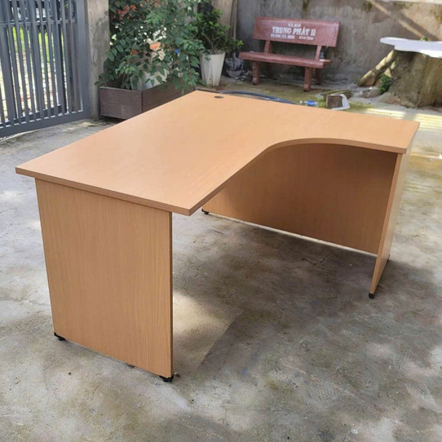 Chất liệu gỗ MFC phủ melamine vân gỗ tự nhiên, bề mặt chống trầy xước, dễ vệ sinh và có độ bền cao. Bàn thanh lý còn mới khoảng 90%, kết cấu ổn định, sử dụng lâu dài.