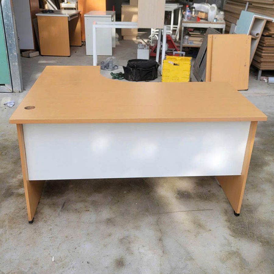 Bàn làm việc gỗ chữ L kích thước 1400 x 1200 x 750 mm (Rộng x Sâu x Cao), thiết kế rộng rãi giúp tối ưu không gian làm việc và sắp xếp hồ sơ, máy tính thuận tiện. Bàn có kiểu dáng hiện đại, chắc chắn, phù hợp sử dụng cho văn phòng hoặc góc làm việc tại nhà.