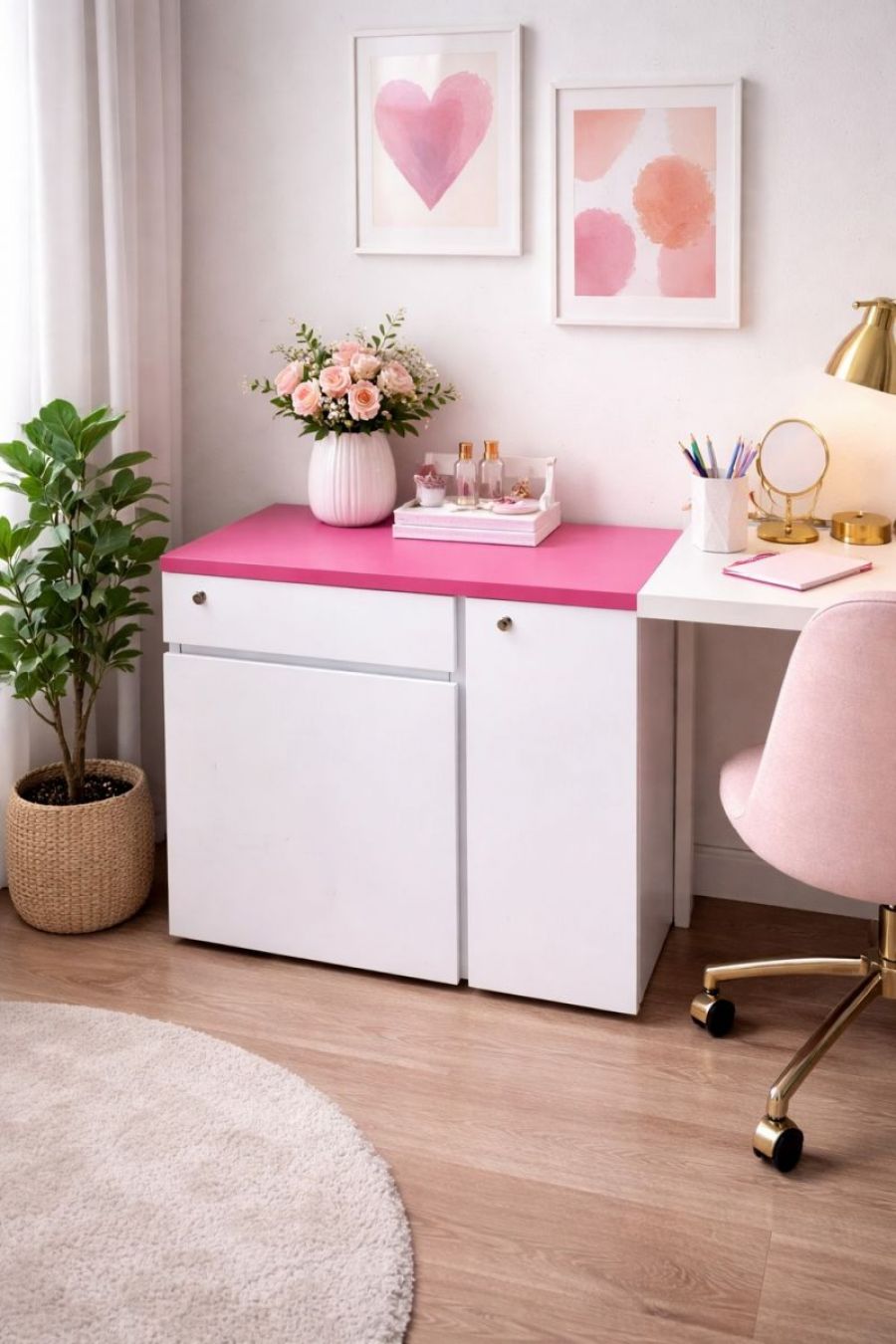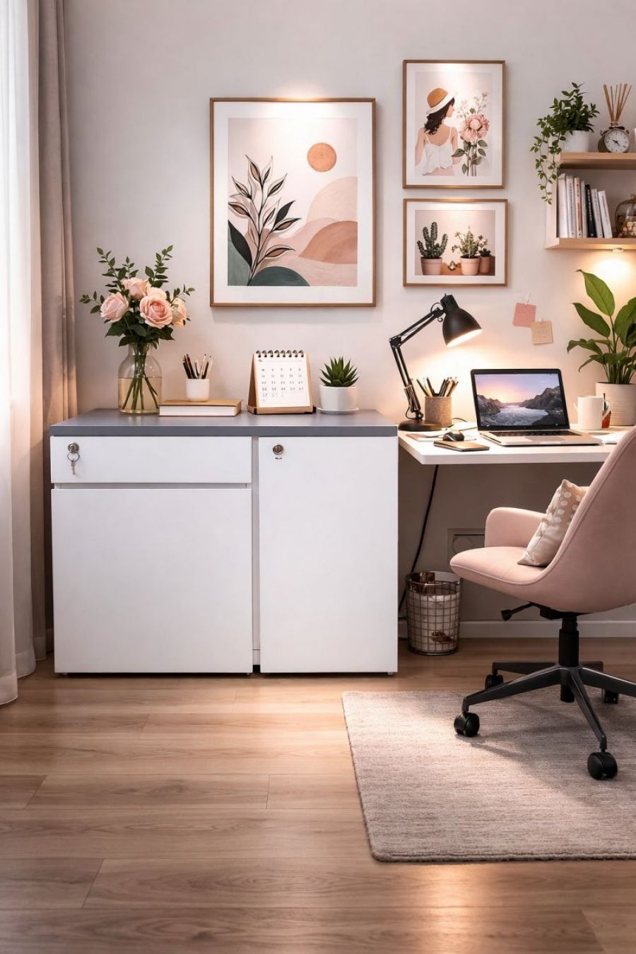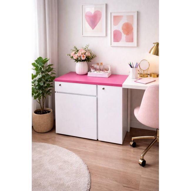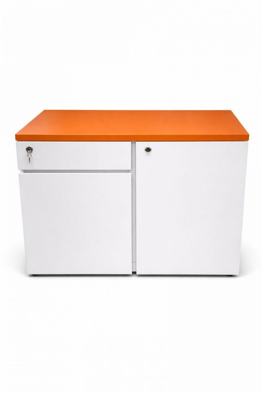 Tủ gồm 2 hộc ngăn kéo và 1 cánh mở, bên trong có kệ chia ngăn giúp lưu trữ hồ sơ, tài liệu hoặc vật dụng cá nhân ngăn nắp.